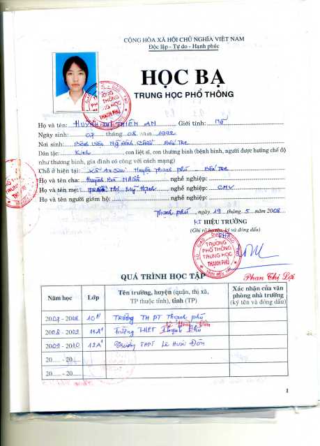 xác nhận điểm. Các em này tuy không phải trong gia đình nghèo nhất vì