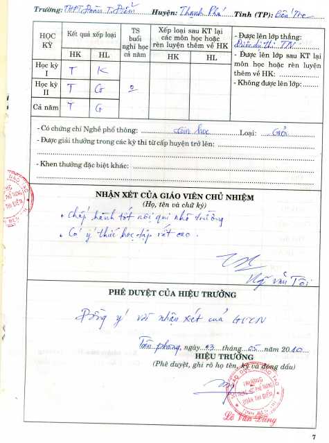 phát khi các em có được phiếu điểm của chu kỳ học đầu tiên.