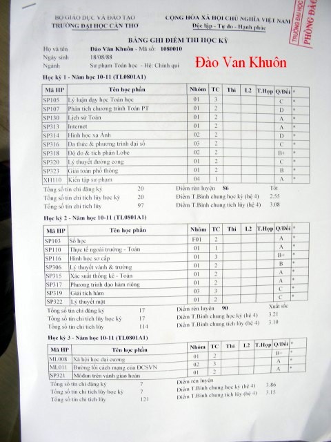 1. Student's Name/ Học Sinh: Đào Văn Khuôn