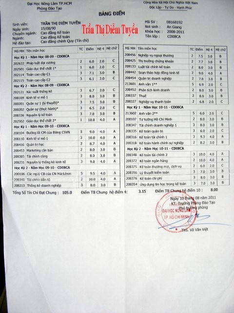 6. Student's Name/ Học Sinh: Trần Thị Diễm Tuyền
