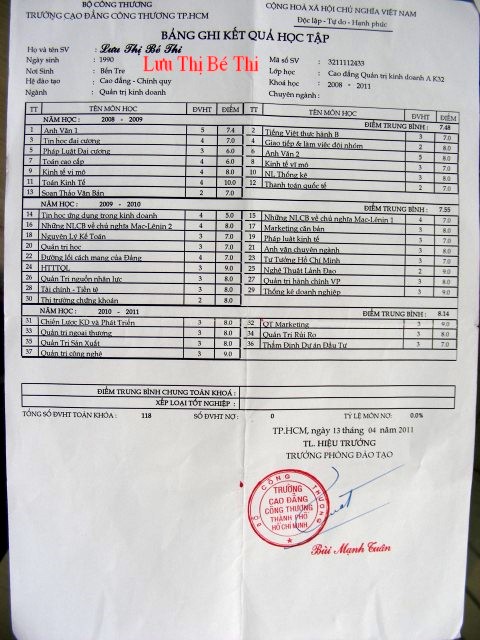 5. Student's Name/ Học Sinh: Lưu Thị Bé Thi