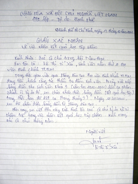 2. Student's Name/ Học Sinh: Lê Thị Tí Xíu