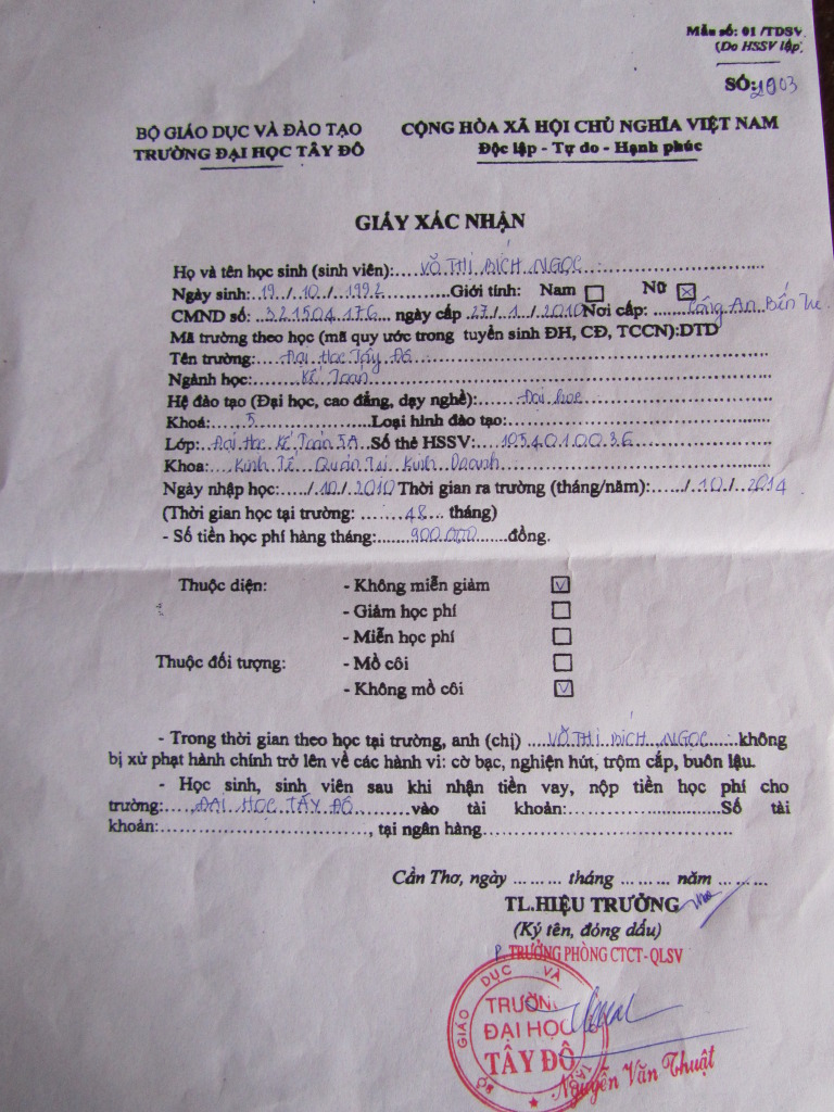 3. Student/Sinh viên Huỳnh Thị Thiên An