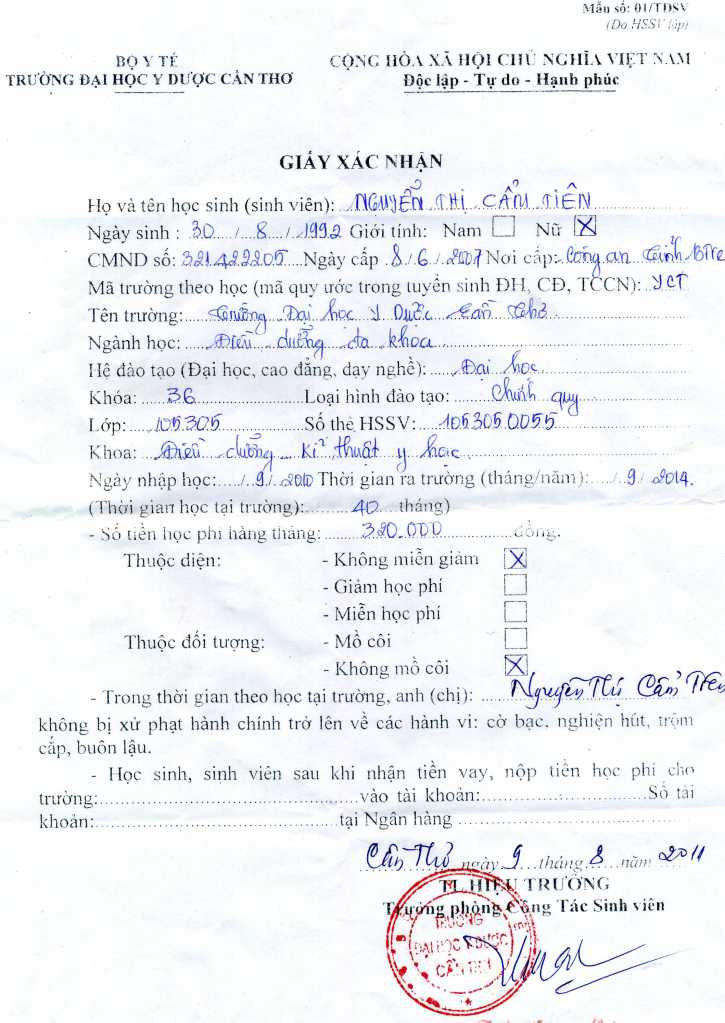 1. Student/Sinh viên Nguyễn Thị Cẩm Tiên