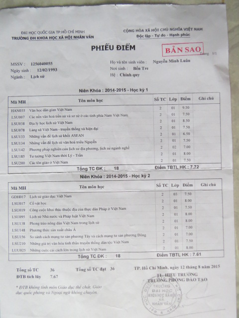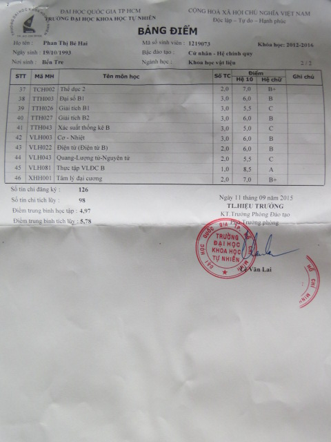 Hình phát học bổng cho các em sinh viên năm thứ tư