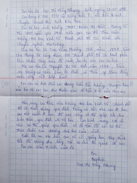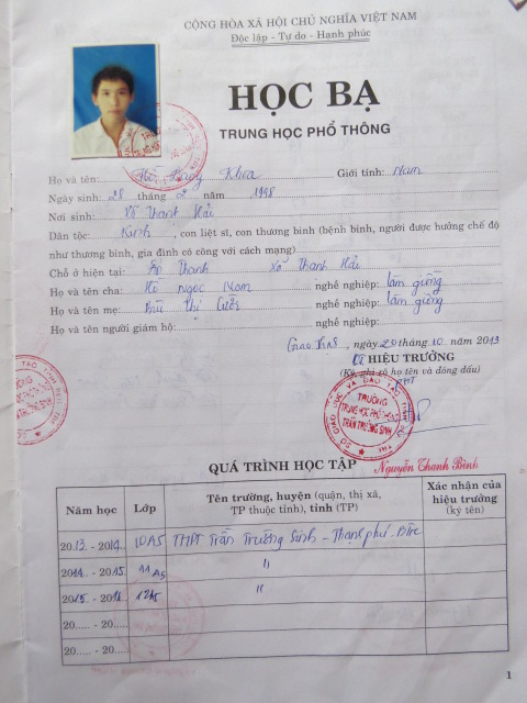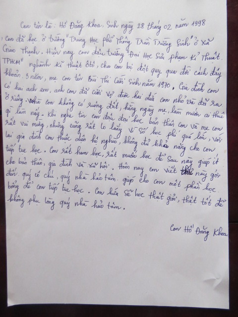 Cha của em Hồ Đăng Khoa đã chết hơn 3 năm rồi. Nhà của em được