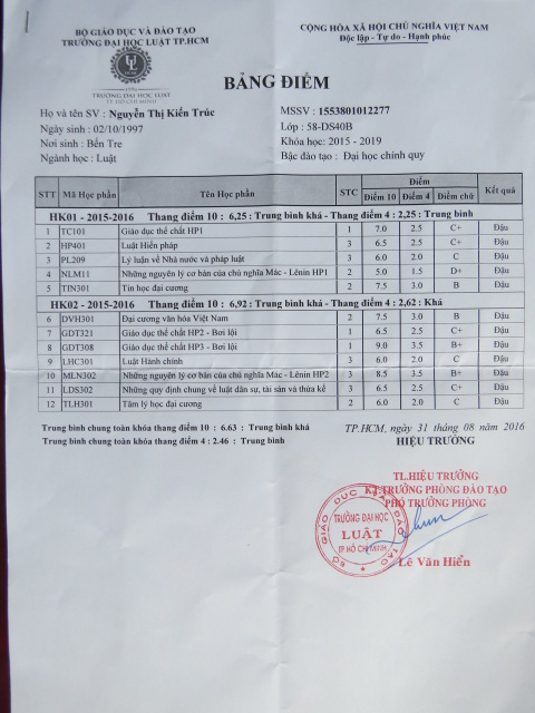 Phát học bổng cho các em sinh viên niên khóa 2016 - 2017