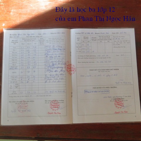 Như hàng năm, các em mới đậu đuợc chọn bởi hiệu trưởng và thầy cô của trường trụng học của các em đang học và tiêu chuẩn để chọn là nghèo và học giỏi. Chúng tôi cũng có đến nhà từng em mới thi đậu và chụp hình . Hình ảnh đã đuợc bỏ vào link duới đây cùng với giấy báo thi đậu và học bạ trung học của các em. Những em đang học năm thứ 2, thứ 3, thứ 4, thứ 5 đại học thì chúng tôi đăng học bạ của năm đang học. Những em ra trường năm nay thì chúng tôi đăng học bạ của khóa học cuối cùng. Bằng cấp và hình ảnh ra trường thì khi nào có chúng tôi sẽ bỏ lên. Thường thường sau khi học xong, các em phải làm 1 luận án trước khi được cấp bằng. Thời gian trung bình để làm xong luận án là từ 6 tháng tới 1 năm. Vì thế bằng tốt nghiệp các em sẽ đưa sau khi có được.