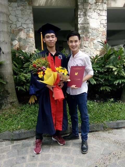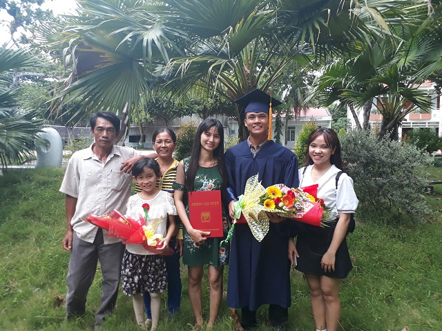 Con có gửi kèm bằng tốt nghiệp với hình con nhận bằng bên dưới ạ! Con nghĩ cô chú nhìn thấy chắc sẽ rất vui!