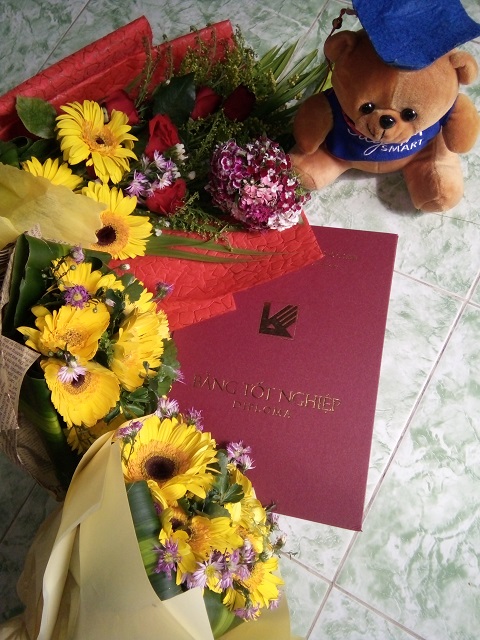 Nhân lễ tốt nghiệp con có chụp vài tấm hình con gửi quý cô chú chung vui với con nhé..^^. Ước mơ cũng là mục tiêu tiếp theo của con là sẽ tích góp đến sáng năm sau con có thể sang nhật để làm việc. Còn bây giờ con sẽ làm tốt công việc hiện tại của mình. Cô chú sẽ luôn cỗ vũ con nhé ^^..!