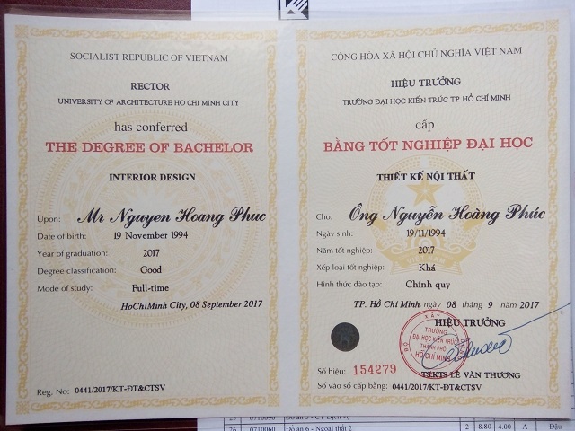 Con muốn cho cô chú hay một tin vui. Con vừa hoàn thành Đồ án tốt nghiệp xong Ngành Thiết Kế Nội Thất và bảo vệ thành công . Điểm đạt điểm B, con mừng lắm.