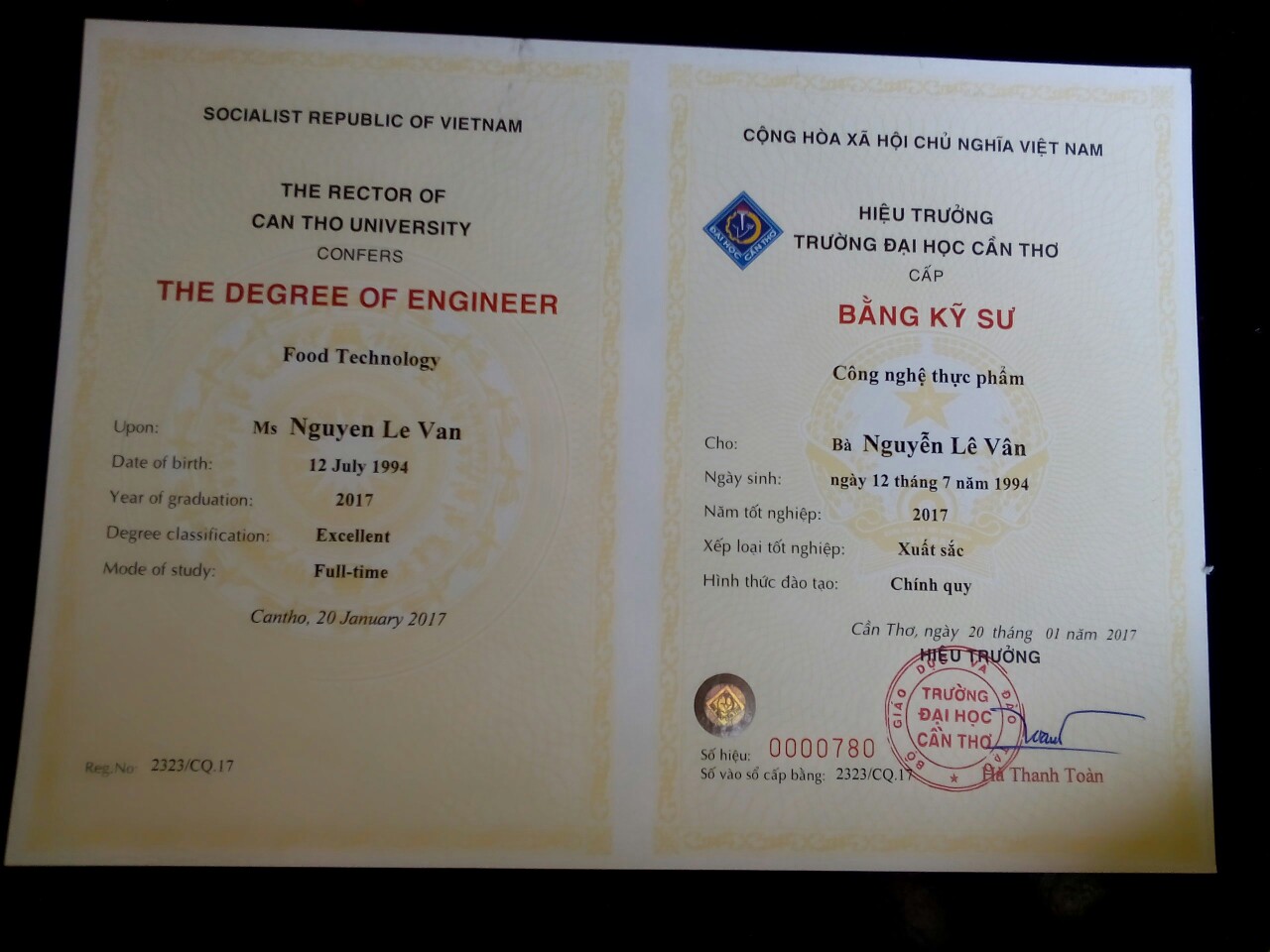 Hiện giờ con đang hoàn thành thủ tục chuẩn bị ra trường. Còn lễ tốt nghiệp khoàng tháng 10 con sẽ nhận bằng.
