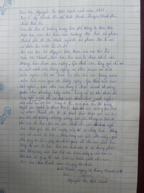 Phát học bổng cho 10 em đại học năm thứ nhất