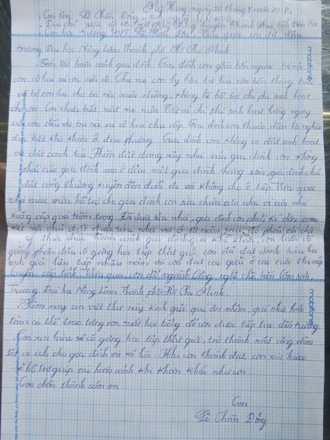 Phát học bổng cho 11 em đại học năm thứ nhất