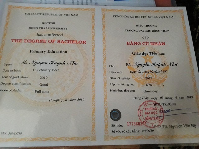 Con xin gửi quý cô chú bằng tốt nghiệp, bảng điểm học tập và những hình ảnh tốt nghiệp mà con đã mong chờ từ rất lâu. Nhờ sự giúp đỡ của hội, con không chỉ có thêm được những trang trải trong học tập mà còn được động viên về tinh thần để con phấn đấu.
