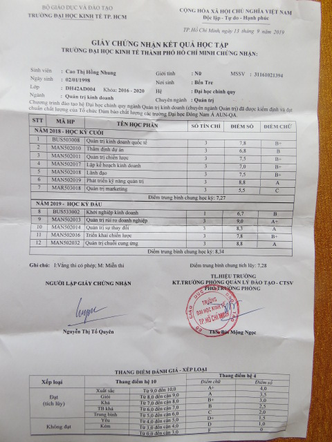 Phát học bổng cho các em sinh viên niên khóa 2019 - 2020