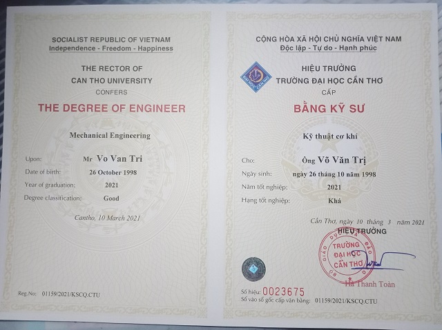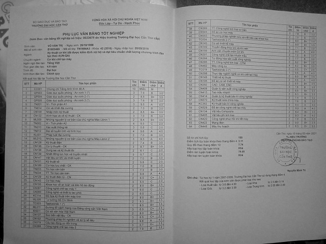 Ngày 23/4 vừa qua trường con có tổ chức lễ trao bằng tốt nghiệp. Nhưng do con bận đi làm nên không đến tham dự buổi lễ và sau đó con đến trường để nhận bằng sau ạ. Con có chụp hình bằng tốt nghiệp và bảng điểm kèm theo bên dưới, kính gửi quý Cô Chú xem ạ.