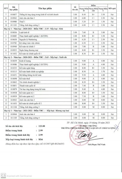 Hôm nay con viết thư này là để gửi bảng điểm bổ sung cho ngày lãnh học bổng 19 tháng 09 năm 2021. Lý do bởi vì dịch nên hôm 19 tháng 09 năm 2021 con chỉ in bảng điểm tạm chưa có dấu mộc và hôm nay con gửi lại cô chú hình ảnh bảng điểm đạt yêu cầu của cô chú là có xác nhận bằng mộc của trường ạ!