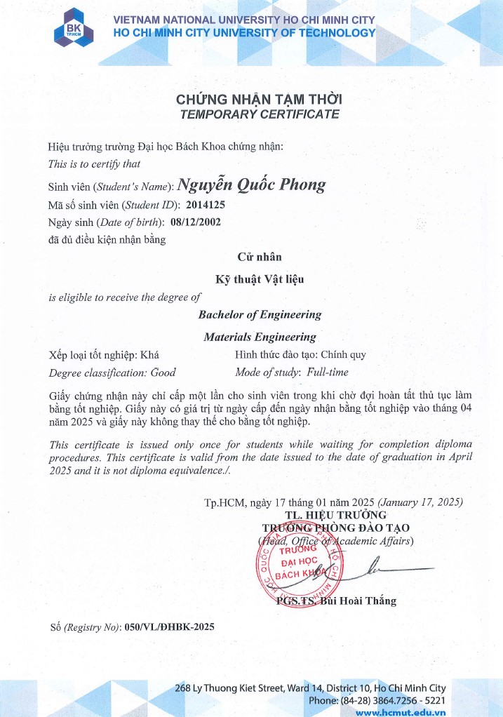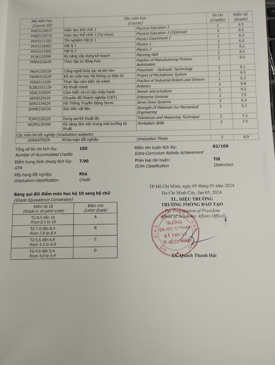 Lúc vào Đại học con có viết thư hứa với Cô Sương và quý Cô Chú là con sẽ cố gắng để tốt nghiệp loại Giỏi. Nhưng kết quả là con tốt nghiệp loại Khá, con thật sự rất rất buồn vì đã không hoàn thành được mục tiêu cũng như chưa thực hiện đúng lời hứa của con với quý Cô Chú. Nhưng con tin rằng với sự cố gắng không ngừng nghỉ, tinh thần quyết tâm mà con đang có, con sẽ phát triển hơn trong tương lai.