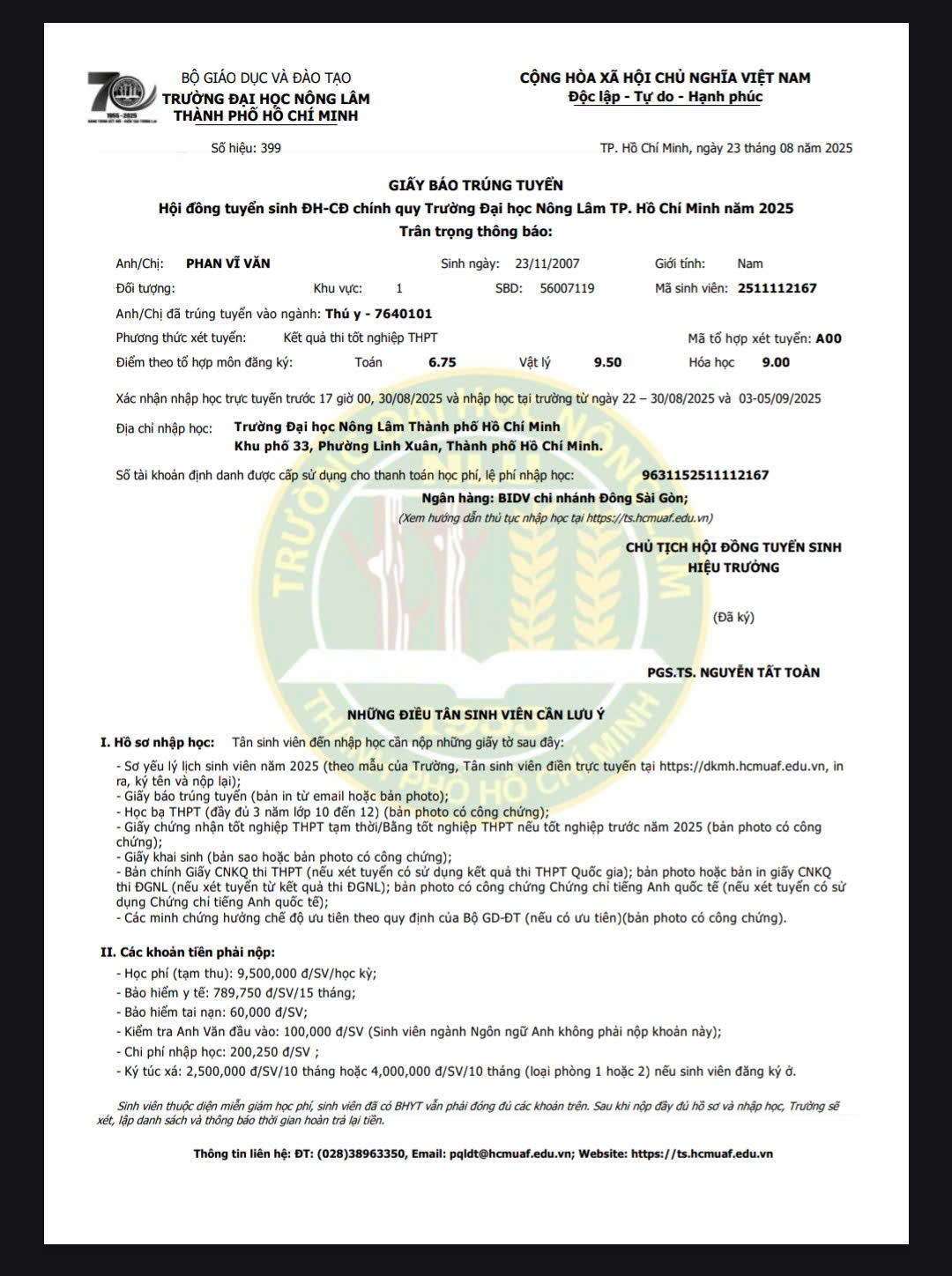 Đỗ tốt nghiệp THPT với tổng số điểm cao nhất trường.