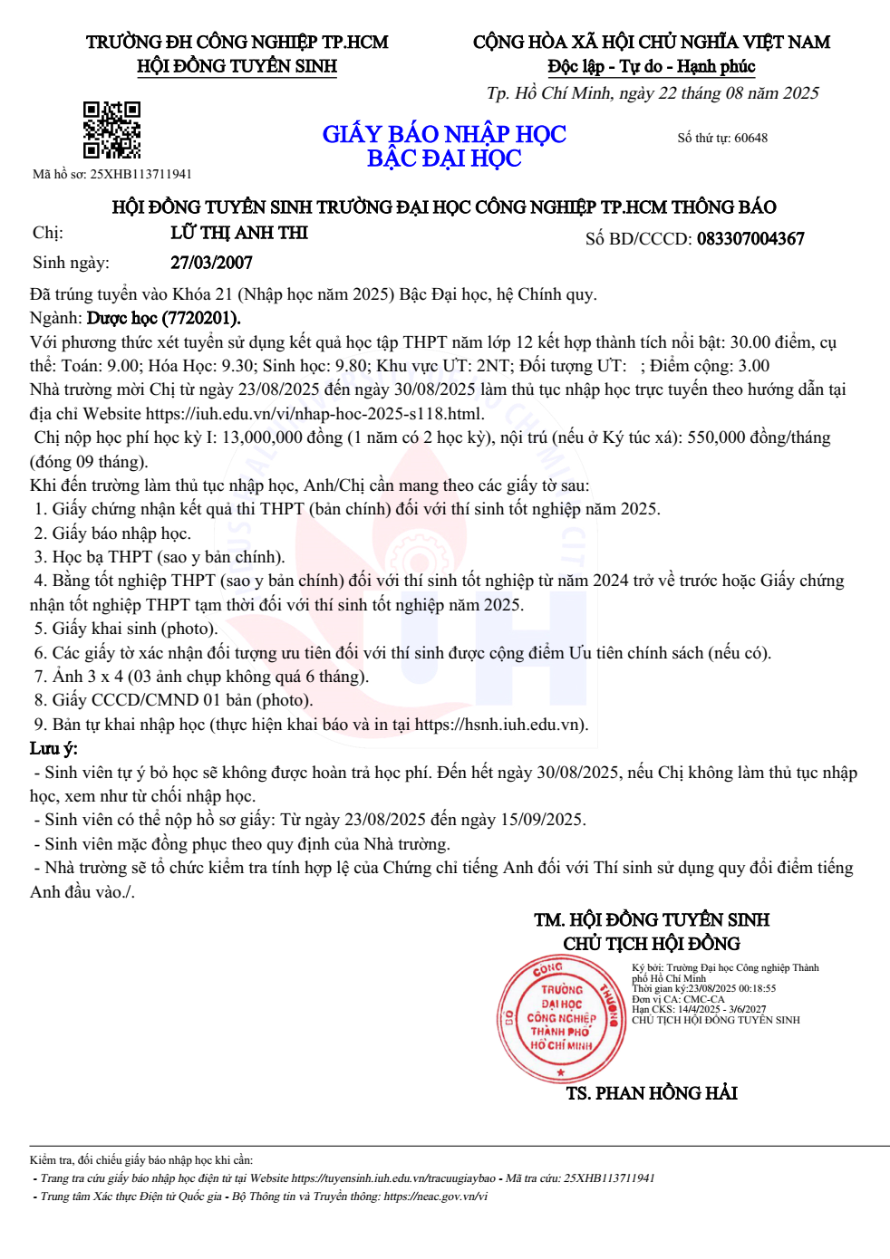Nhiều năm liền là HS giỏi, riêng năm học lớp 12 đạt danh hiệu học