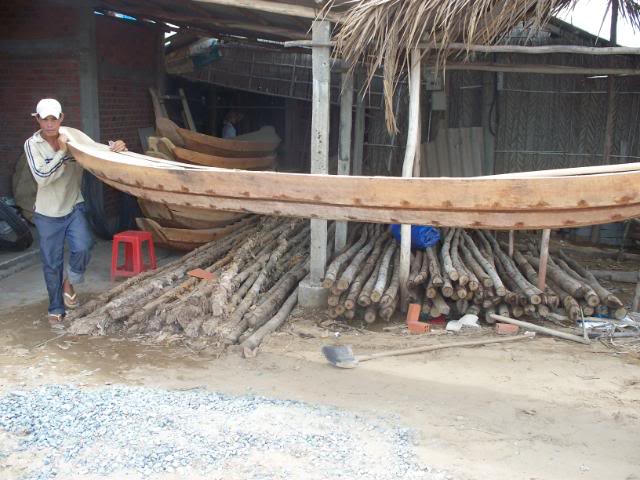 trong hình là chiếc ghe cũ của người ta bỏ rồi bà lượm lại xài, nhưng gỗ đã mục,