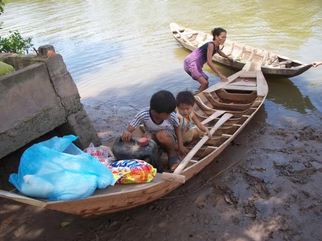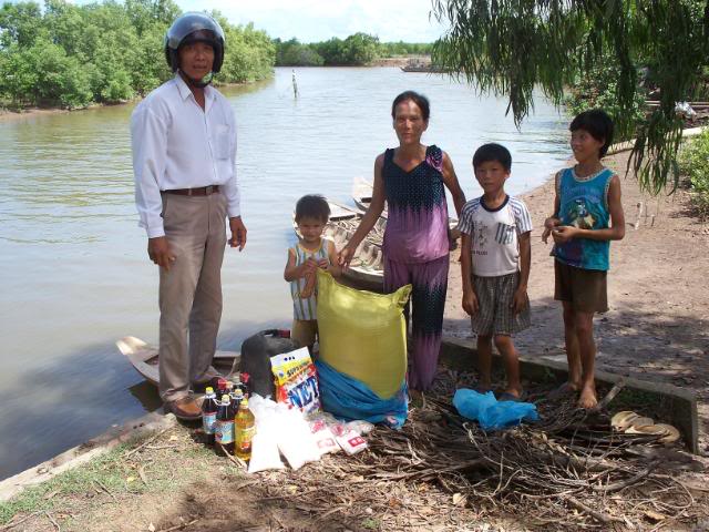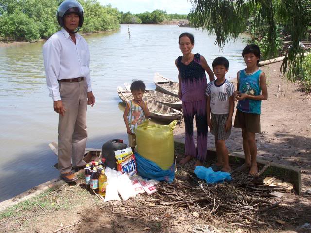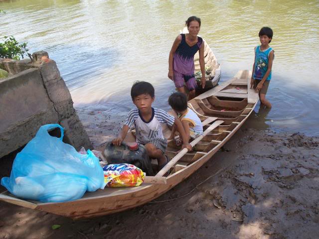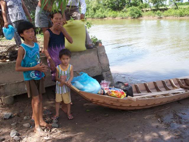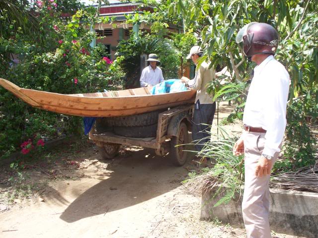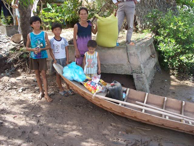 Đây là hình ảnh chúng tôi đi mua ghe tặng cho bà, chụp từ ở chổ bán ghe, chuyên chở và tới lúc đem trao tận tay bà . Bạn Phú Lê có tặng thêm $50 để mua gạo muối và đã nhờ chúng tôi làm luôn chuyện này . Ghe, gạo, dầu ăn, dầu lửa, nước tương, nước mắm, bột ngọt, đường, muối, và xà bông đã đem đến tận mé sông nhà bà và trao đầy đủ: