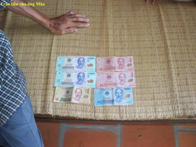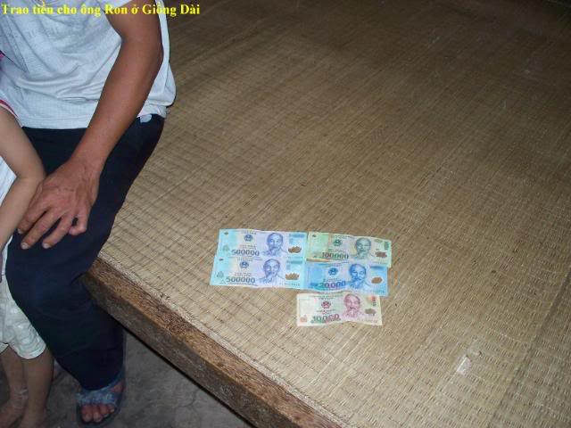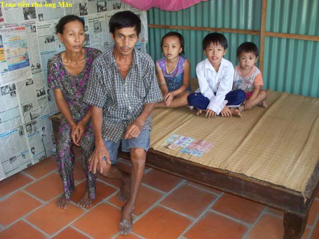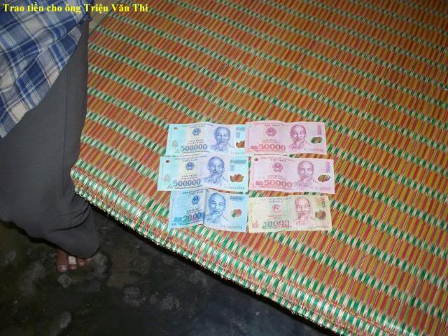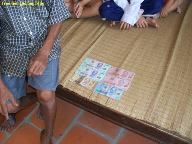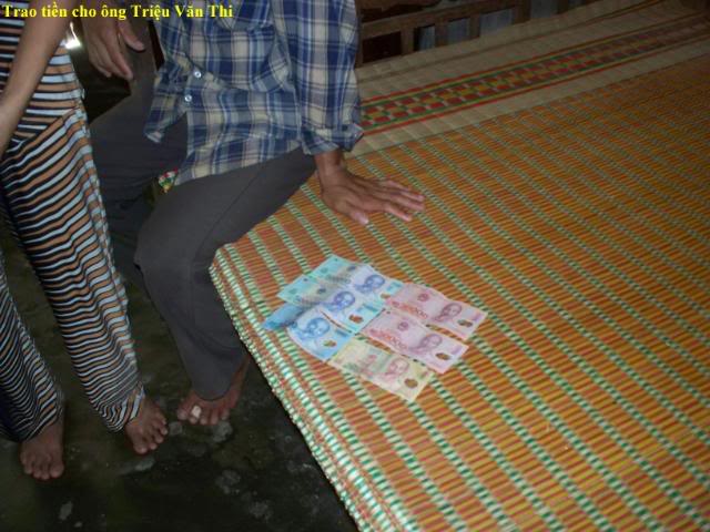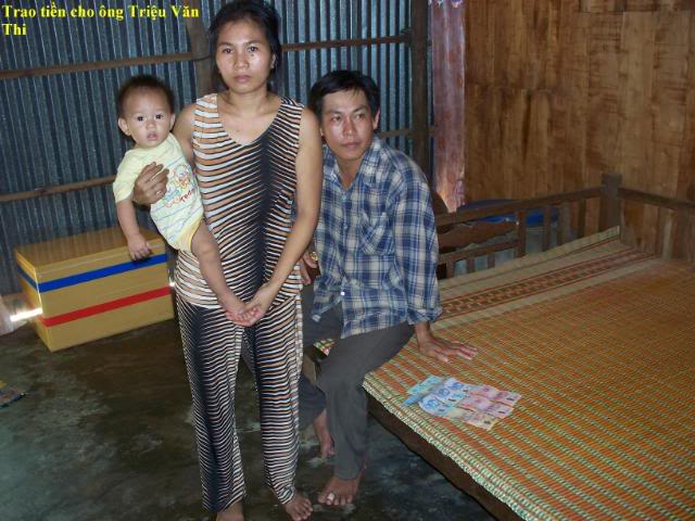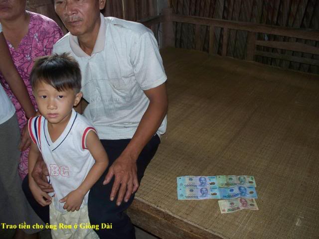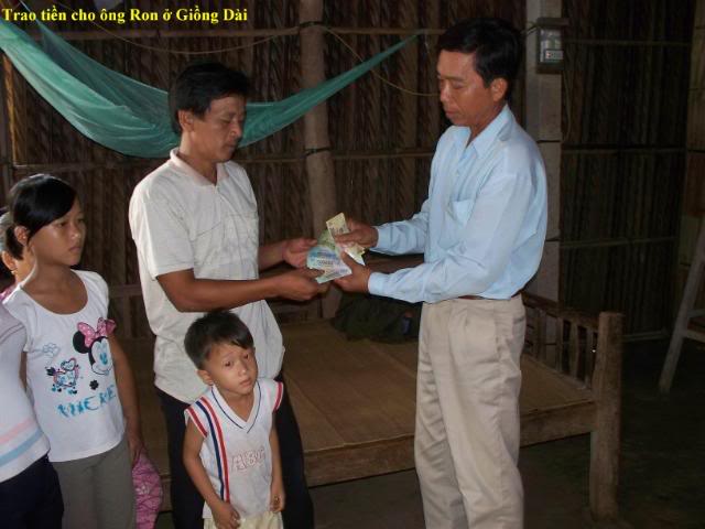 Đây là hình trao tiền cho 3 gia đình có con nhỏ . $200 chia đều làm 3: