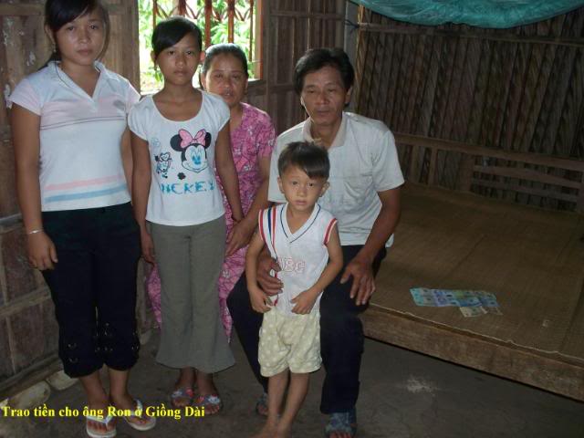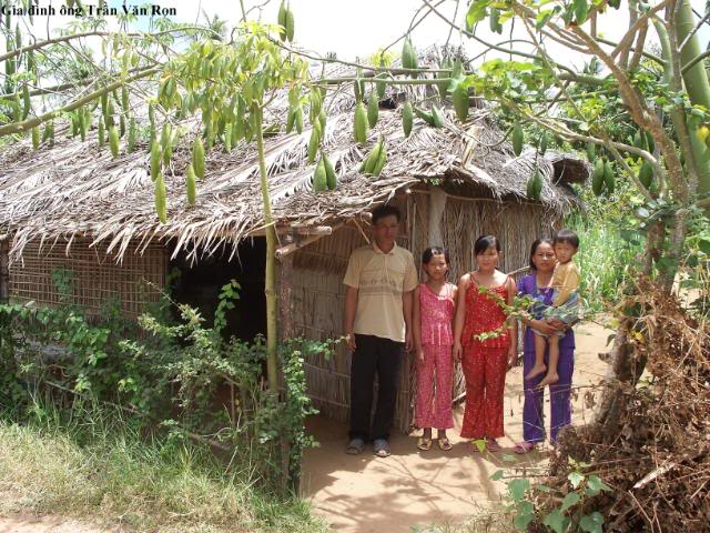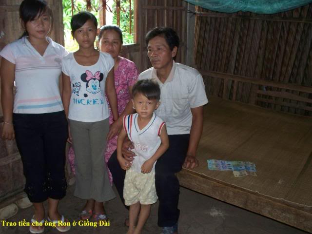 Trần Văn Ron 46t, số nhà 188/3 ấp 4 xã Thạnh Phong. Nhà có 5 người: 2 vợ chồng và 3 đứa con. Đứa con thứ 2 bị khối u não phải vô hóa chất tóc bị rụng mới ra. Nhà rất nghèo, tuy nhà thương thì miển phí nhưng tiền cước phí đi lên xuống nhà thương là một khó khăn.