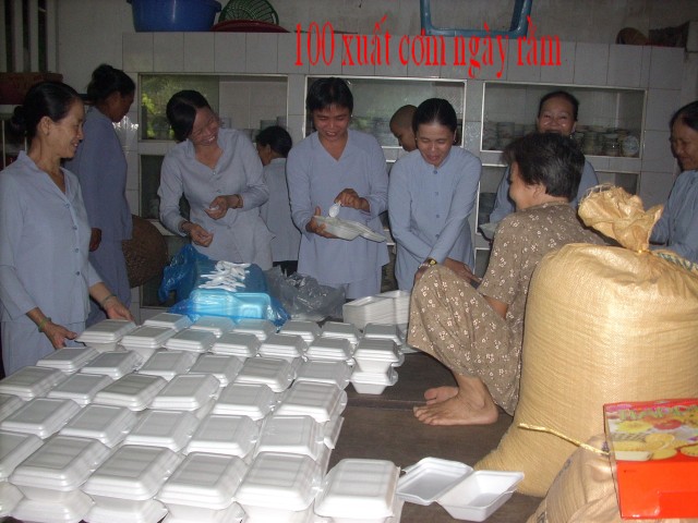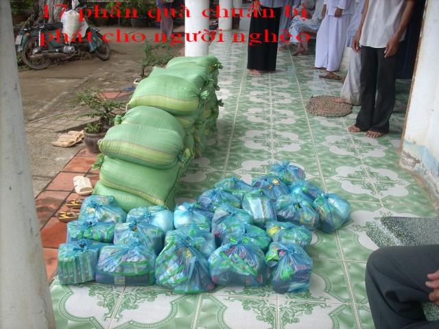 vào ngày Rằm Lớn và tiền còn lại thì tặng thực phẩm khô cho những gia đình cần đuợc giúp đở.