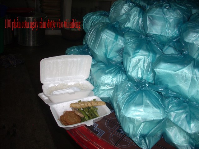 Đây là hình ảnh phát 17 phần quà và hình phát 100 phần cơm tình thương: