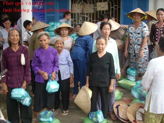 Vào ngày rằm tháng 10 năm 2011 (lịch ta) vừa qua chúng ta đã phát 100 phần cơm tình thương và 17 phần quà cho những gia đình nghèo .