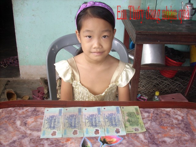 gia đình em Cẩm Thúy chúng tôi đưa hết tiền mặt vì em bị bịnh phải đi lọc máu thường xuyên và