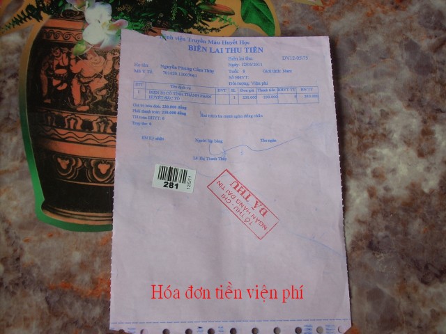 3. Em Nguyễn Phùng Cẩm Thúy 8 tuổi số nhà 21 C ấp Phú Hào xã Phú Hưng thành phố Bến Tre tỉnh Bến Tre. Em bị bệnh ung thư máu bẩm sinh từ nhỏ nhưng ba mẹ em mới phát hiện cách nay 2 năm do tình cờ đưa cháu đi khám bệnh vì cháu bị sốt. Bác sĩ bảo em phải thay máu định kỳ hàng quý ( 3 tháng một lần ) suốt đời. Với chi phí mổi lần khoảng 2,5 triệu đến 3 triệu đồng VN. Ba em làm công chức mỗi tháng thu nhập khoảng 1.000.000 đồng còn mẹ em thì nội trợ và buôn bán nhỏ thu nhập khoảng 20.000 đồng mỗi ngày. Với thu nhập trên thì chưa chắc đủ cho gia đình 4 miệng ăn mà phải lo cho còn tiền thay máu mỗi quý. Đến kỳ vô máu mà không có tiền chạy chữa cho em thì nước da của em trở nên xanh mét thật đáng thương. Cha em là Ông Nguyễn Quốc Hùng sinh năm 1974 còn mẹ em Bà Phùng Thị cẩm Loan sinh năm 1983 và anh trai em Phùng Quốc Vũ 9 tuổi đang học lớp 4. Cha em thay mặt gia đình cám ơn tấm lòng hảo tâm đã giúp đỡ cho em có tiền để vô máu trong tháng này.
