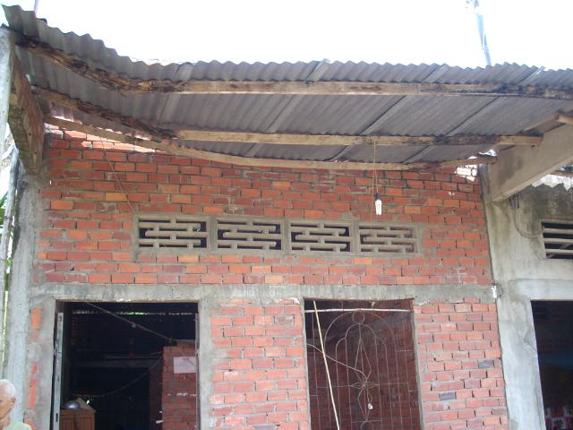 Mr. Mai Van Le, born in 1959, lives at 187/2, ward Thanh Qui B, hamlet of Binh Thanh, district of Thanh Phu, city of Ben Tre. He was in need of aluminum roof panels for his “tinh thuong” house that he received through an acquaintance. His house was momentarily covered with old and broken aluminum panels that he had obtained. He requested assistance to re-roof his house.