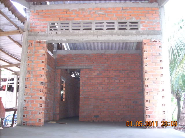 lại các vách bị hư, mặt ngoài nhà, và lợp phần còn lại của căn nhà.