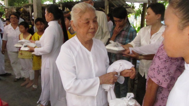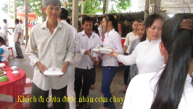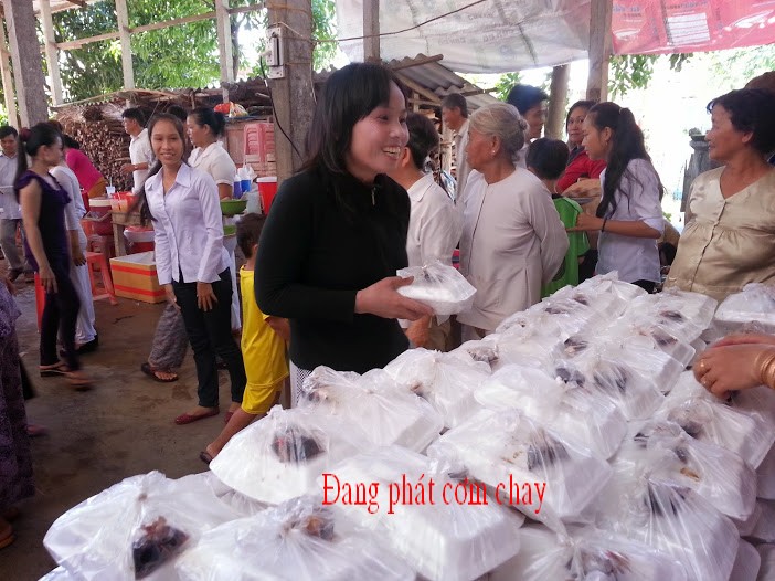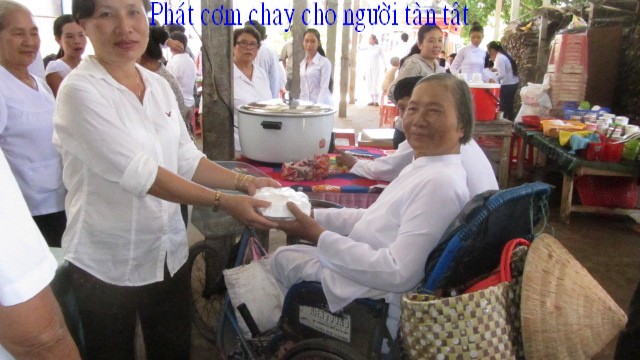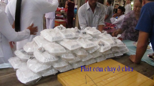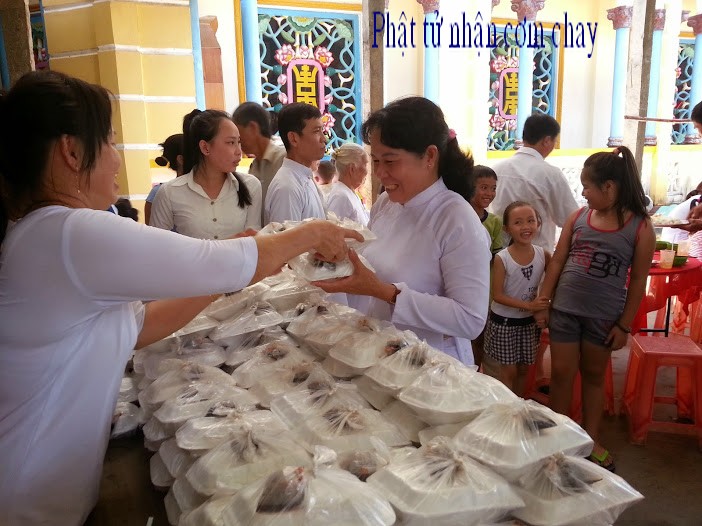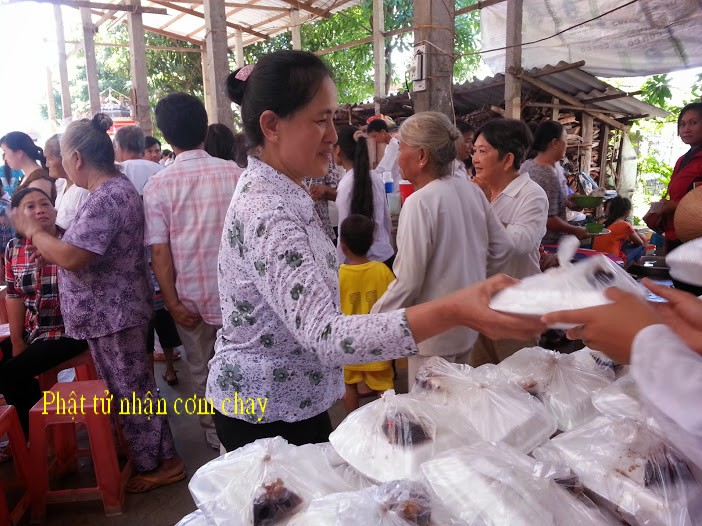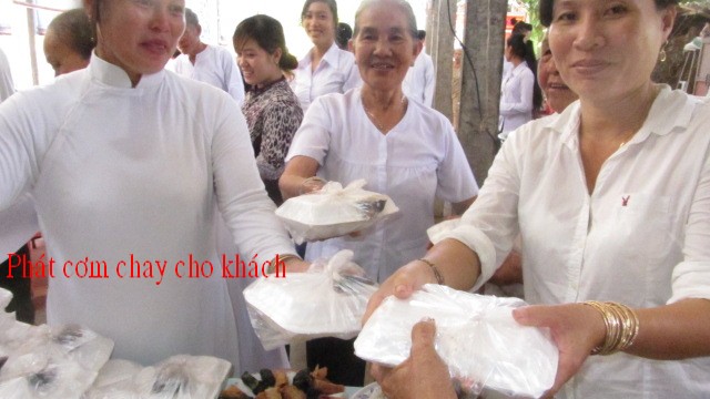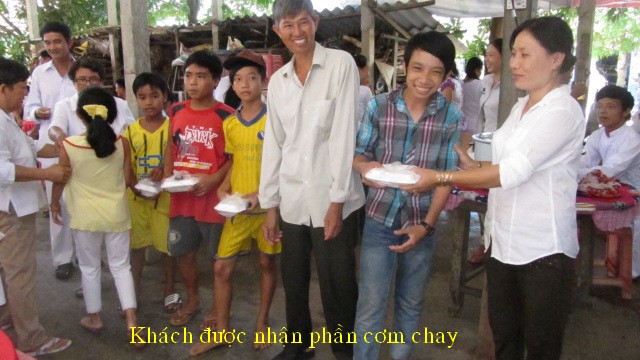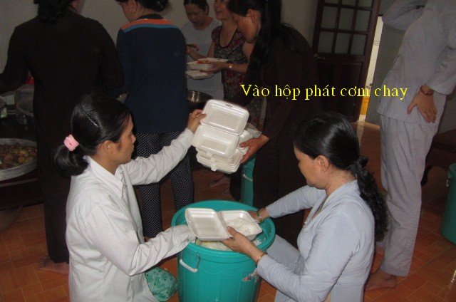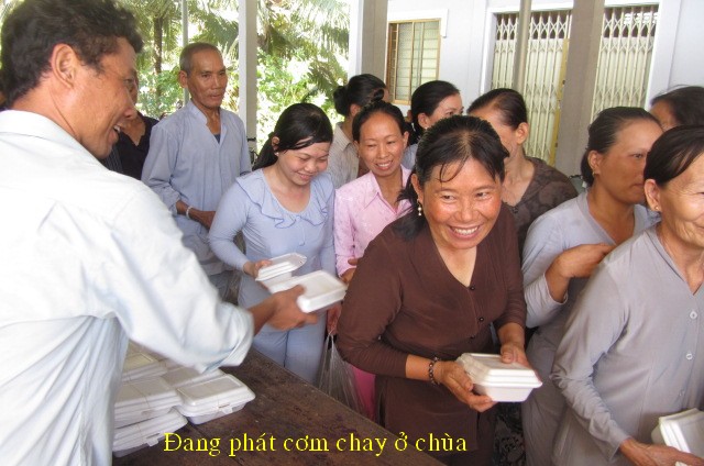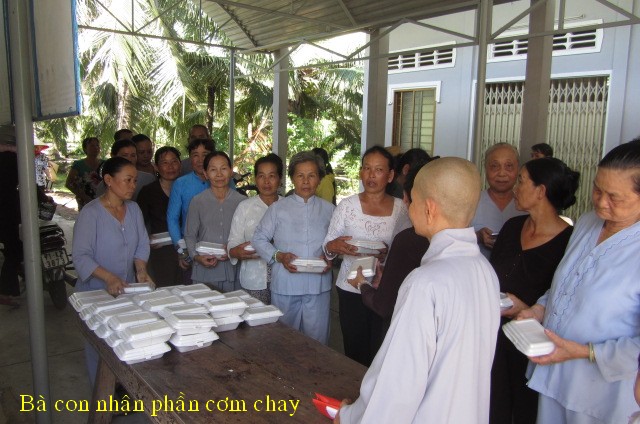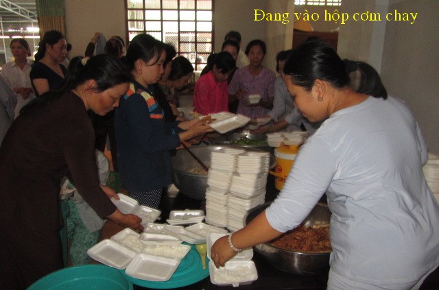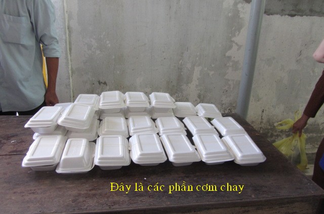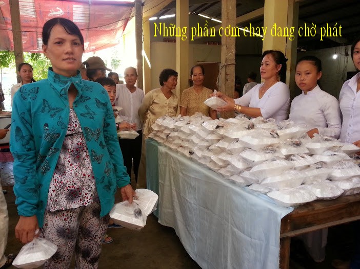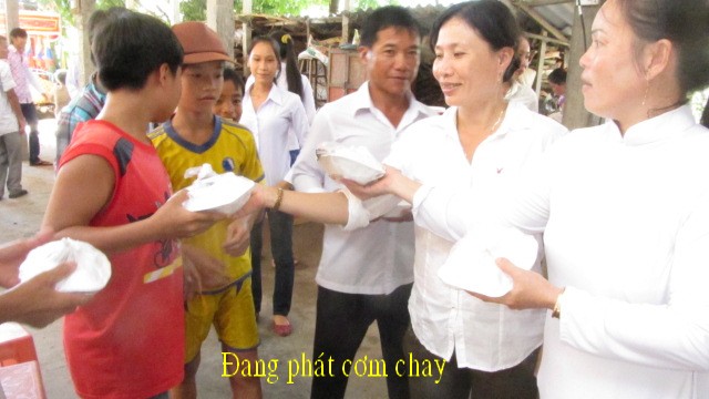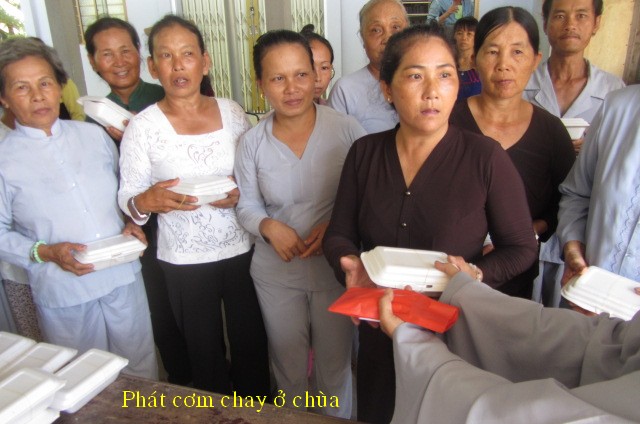 Chương trình cá biêt. phát cơm chay cho người nghèo vào ngày Rằm. Mỗi người nghèo được phát 1 phần cơm hộp chay.
