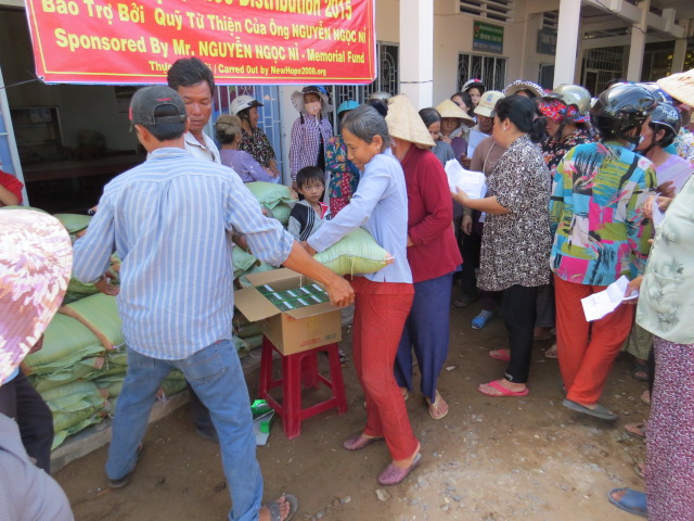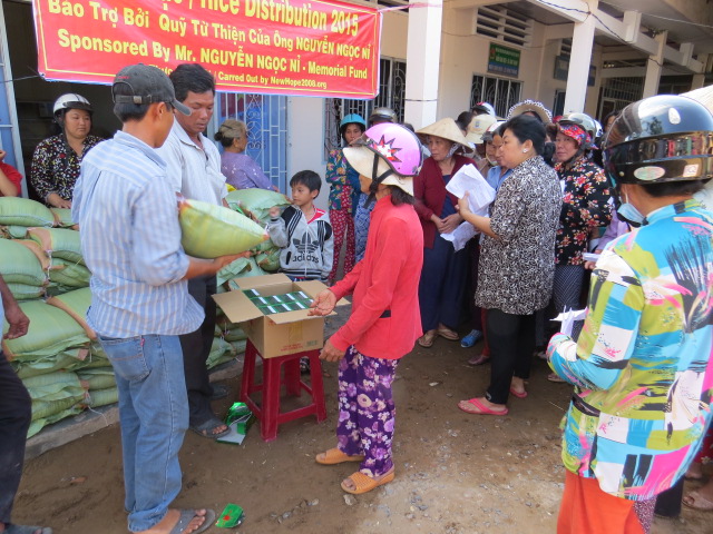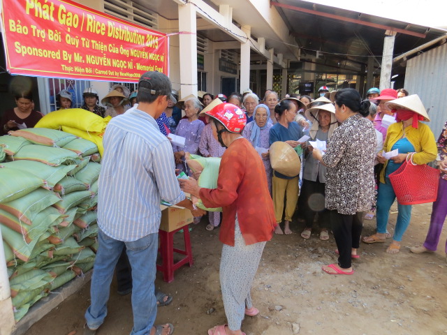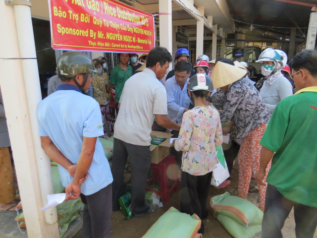 It is with the deepest sympathy that we extend our prayers to Mr. Steven Ni Ngoc Nguyen's family for his passing. Mr. Nguyen had helped our organization in its start-up days by supporting our Rice and Housing projects. We will be forever grateful for his contributions. We have been asked to carry a humanitarian project in his honor with the funds from his funeral donations. Per this request, we have distributed rice to 150 needy families in the Giao Thanh province where Mr. Nguyen was born. Mr. Nguyen's family members in Vietnam also came to help distribute the rice. Each of the first 132 families got 10 kilos of rice and a bottle of menthol oil and each of the last 18 families got 20 kilos of rice. We are grateful for the following friends of Mr. Steven Ni Ngoc Nguyen for funding this project: