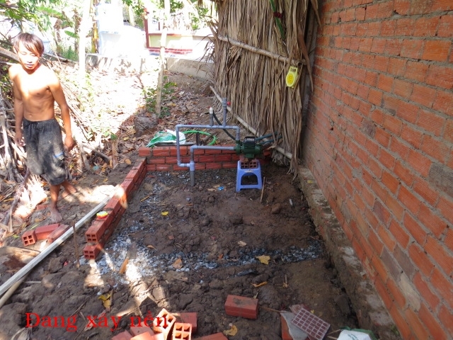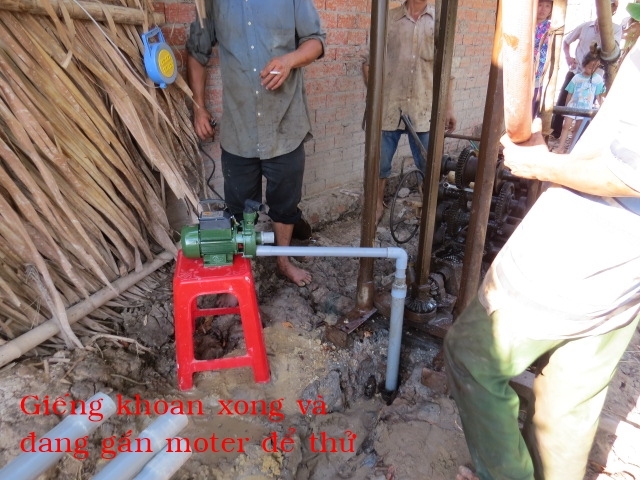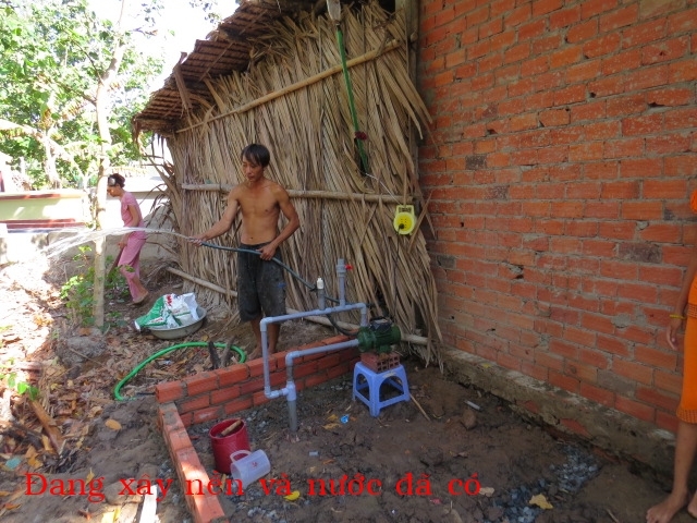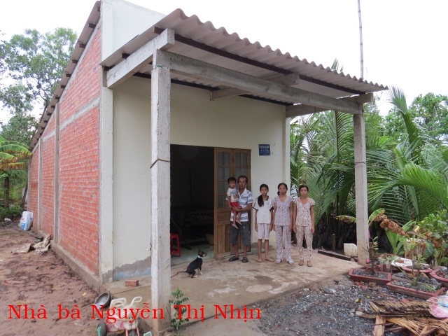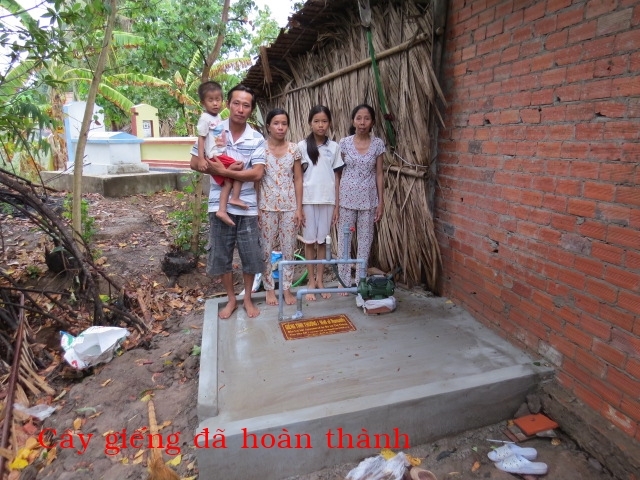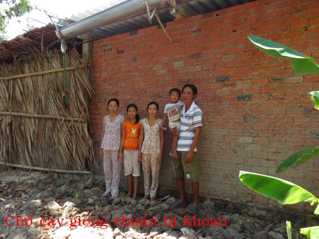 The well was built for Mrs. Nguyen Thi Nhịn's family. Mrs. Nguyen currently lives in An Thanh village in Thanh Phu district in Ben Tre county. There are 5 people in her household: herself, her son, daughter-in-law and 2 grandchildren. They make a living by selling lottery tickets. They don't have consistent income and don't have a full meal every day. Last year, we built for this family a house of humanity; however, there is no water source around so they have to carry water from far way. Thus, this well makes their lives much easier. This is also the first well of humanity that was built by our organization.