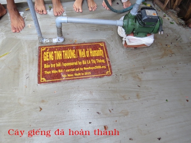 Cái Giếng Tình Thương này được xây cho nhà bà Nguyễn Thị Nhịn ở ấp An Thạnh xã An Thạnh (Bến Vinh) huyện Thạnh Phú tỉnh Bến Tre. Nhà bà có 5 người gồm có bà, các con của bà, và hai đứa cháu. Cuộc sống rất vất vã khó khăn. Họ đi bán vé số đê? kiếm sống nên ngày đói, ngày no. Họ vừa được hội chúng ta bảo trợ cho một căn nhà tình thương hồi năm ngoái. Tuy nhiên chung quanh không có giếng nước. Họ phải đi rất xa để gánh nước về. Vì thế cái Giếng Tình Thương của chúng ta sẽ giúp cho gia đình họ đở vất vã hơn trong cuộc sống. Đây cũng là cái giếng tình thương đầu tiên được xây bởi hội chúng ta.