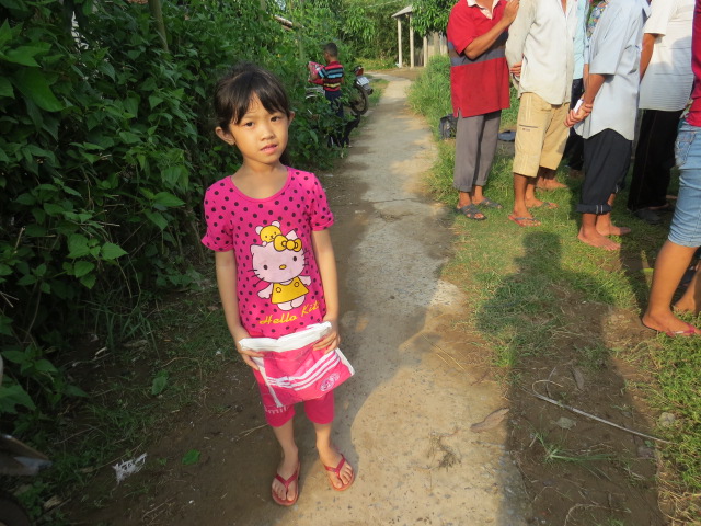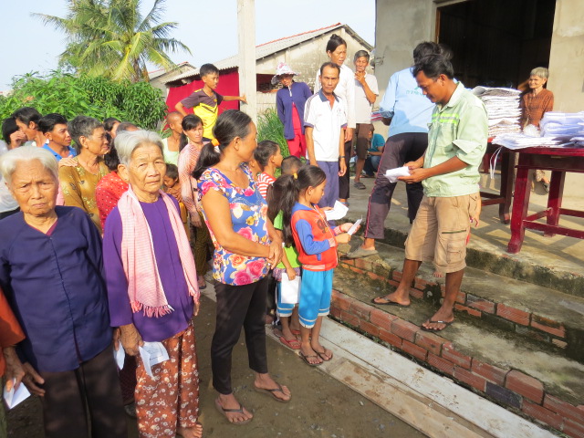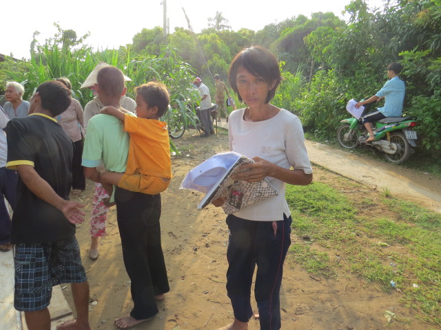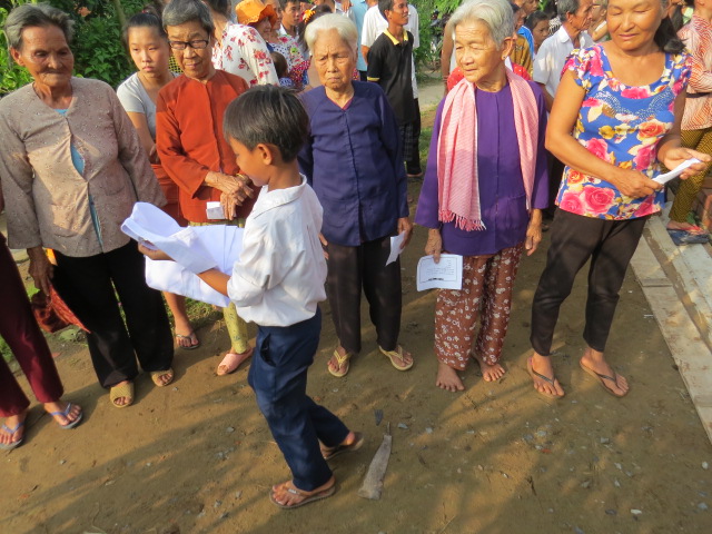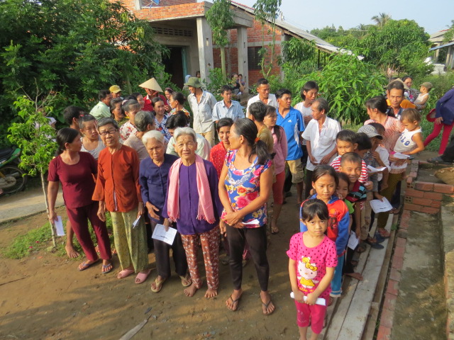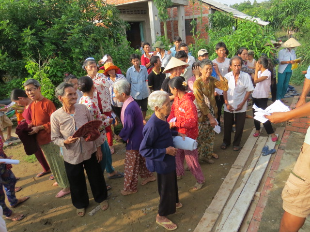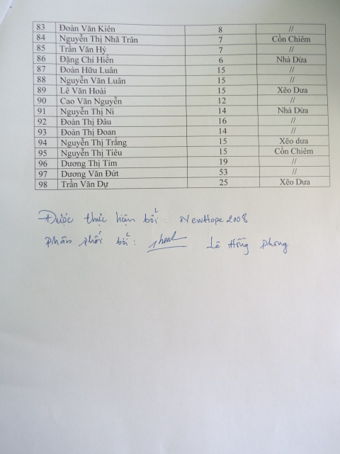 Phát cho 98 người vừa người già, đàn ông, đàn bà và trẻ em: