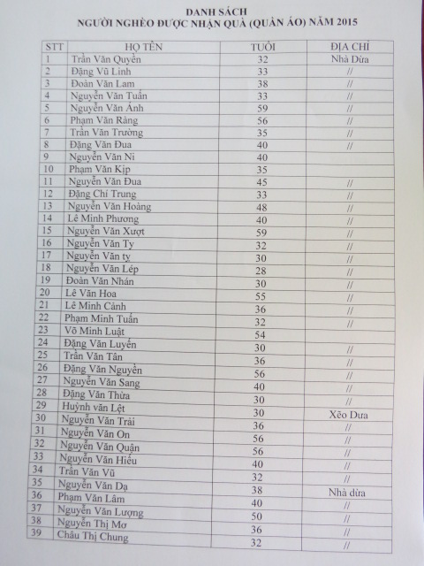 Tổng cộng có 67 người nhận 60 áo mới, 60 quần mới.
