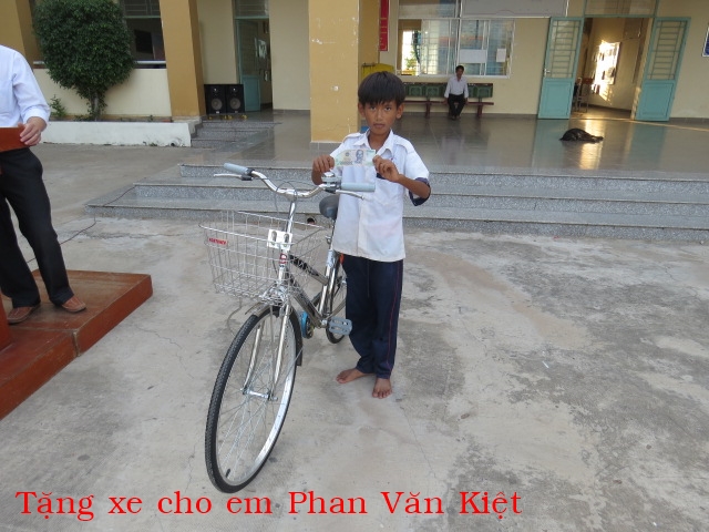 Tặng xe đạp cho em Phan Văn Kiệt ở trường Trung Cấp Thạnh Phong:
