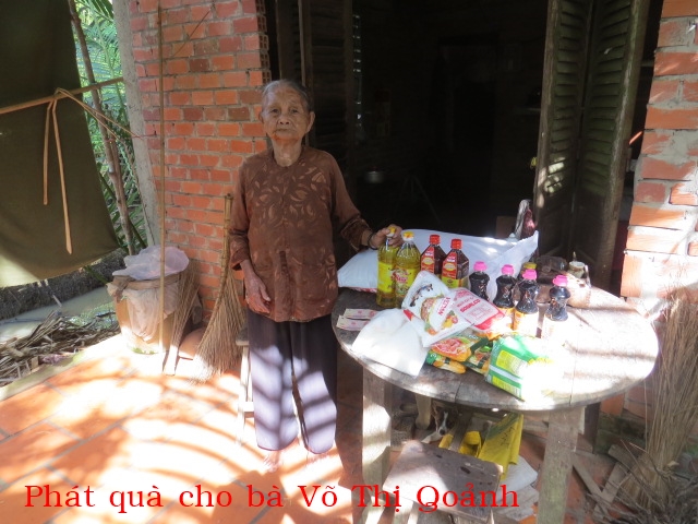 3. Bà Võ Thị Qoảnh 86t ở ấp Tân Lợi xã Tân Phú Tây huyện Mõ Cày Bắc tỉnh Bến Tre. Không con, hàng ngày nhờ có hơn 5 gốc dừa hái trái bán và nhờ các mạnh thường quân cho gạo ăn.