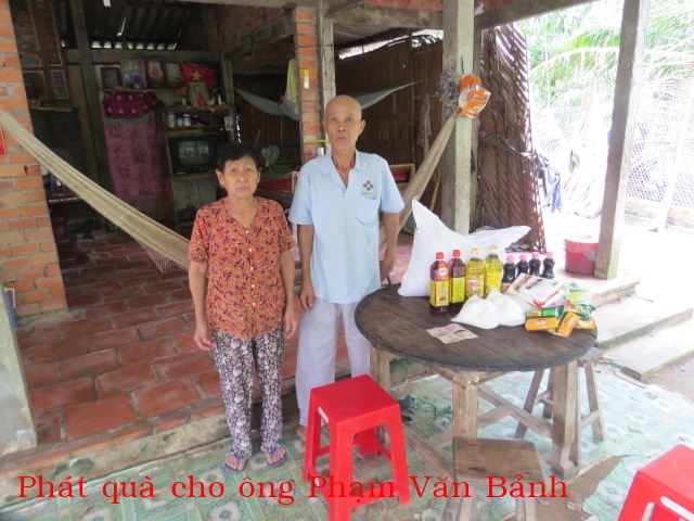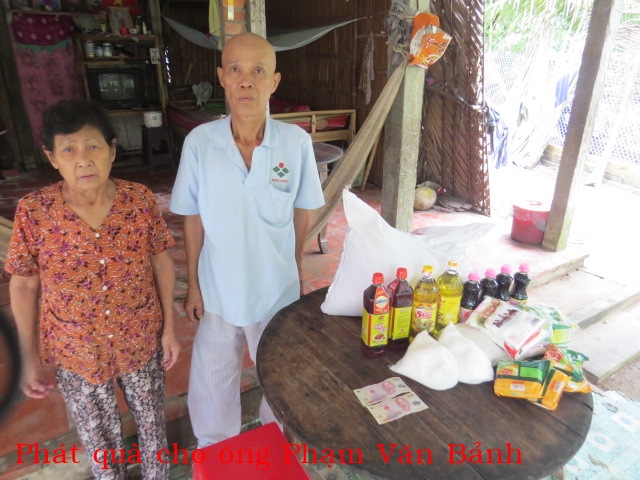 4. Ông Phạm Văn Bảnh 65t ở ấp Tân Thuận Ngoài xã Tân Phú Tây huyện Mõ Cày Bắc tỉnh Bến Tre. Nhà không ruộng đất, có vợ nhưng không con. Ông bị ung thư phổi bị vô hóa chất nên tóc bị rụng. Hàng ngày ông nhờ các mạnh thường quân cho tiền trị bệnh và cho gạo ăn.