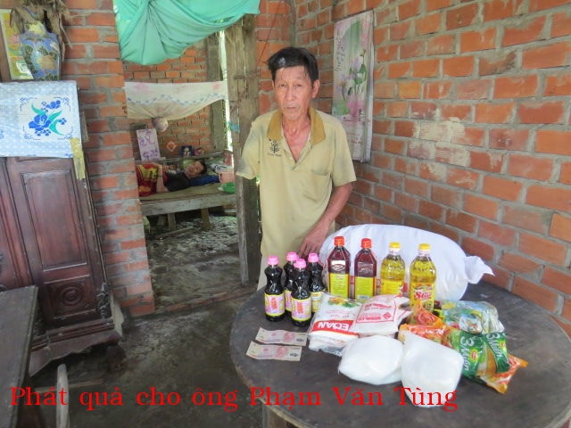 4. Mr. Banh Van Pham, a 65 year old living with his wife in Tan Thuan Ngoai sub-hamlet, Tan Phu Tay hamlet, Mo Cay Bac district, Ben Tre province. The couple does not have children. They do not own any farmland. Mr. Pham has lung cancer and has been receiving chemotherapy treatment. He has lost his hair due to side effect of chemotherapy. The couple relies on benefactors for rice and money to pay for his lung cancer treatment.