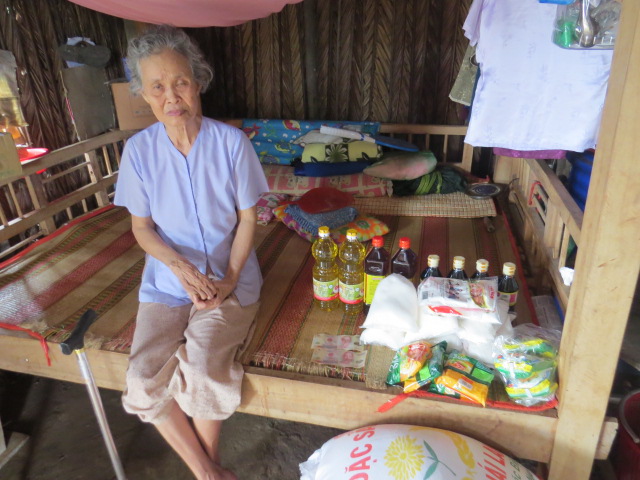 3. Ms. Qoanh Thi Vo, an 86 year old woman living by herself in Tan Loi sub-hamlet, Tan Phu Tay hamlet, Mo Cay Bac district, Ben Tre province. Ms. Qoanh does not have any children. She survives on rice given by benefactors and money made from selling coconuts from her five coconut trees.