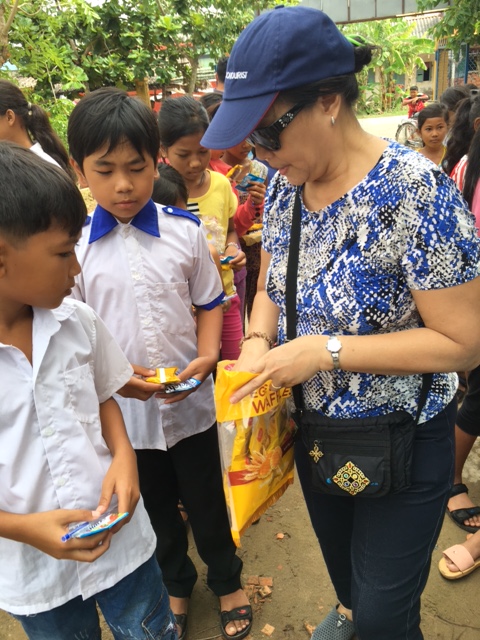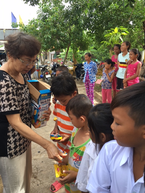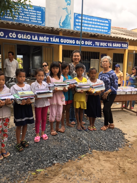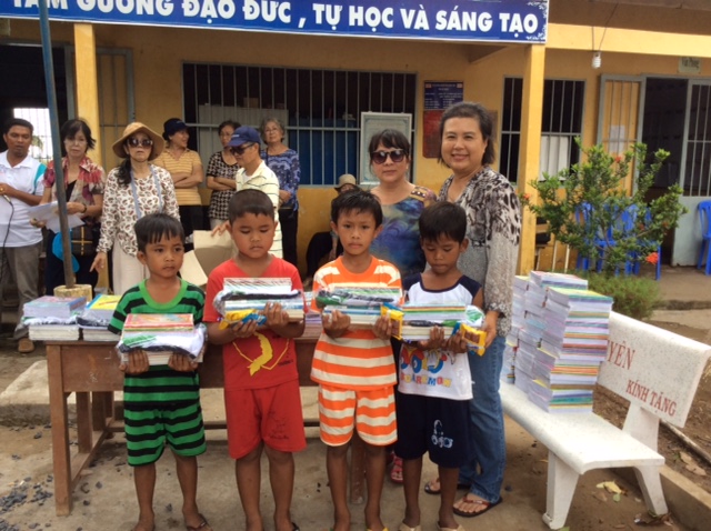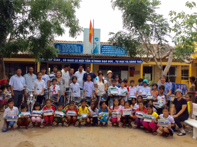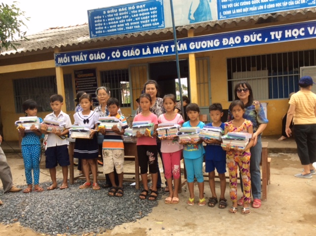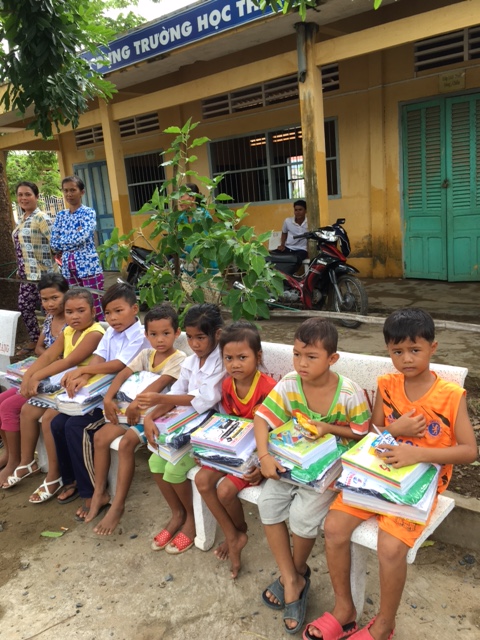 Tặng quà cho HS nghèo tại trường