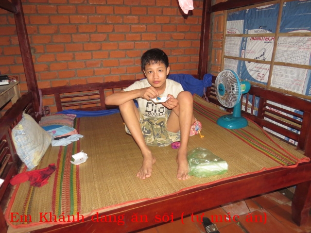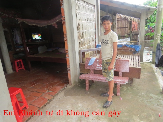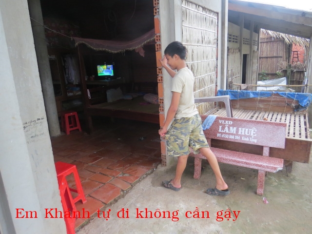 Cám ơn các bạn thật nhiều đã giúp cho em Khánh . Nếu không có sự giúp đở của các bạn, em Khánh bây giờ chỉ nằm liệt giường chờ chết mà thôi (nhà thương Bến Tre đã cho về và nói không chửa được nữa). Lần đầu tiên dẩn em Khánh lên thành phố, ba em phải cõng em mỗi bước đường vì chân em bị cứng ngắc không có đứng được, còn hai tay em gì cứ giơ lên trời không có hạ xuống được, và đầu óc thì không nhận ra ai hết và không nói chuyện được. Khi các bạn nhìn cái video quay em đang nằm trước cửa nhà thương Bến Tre khi nhà thương đó nói không cứu được nữa và hình ảnh của em Khánh bây giờ, chắc các bạn rất mừng cho em ấy. Cám ơn các bạn đã cho em Khánh cơ hội tìm lại cuộc đời