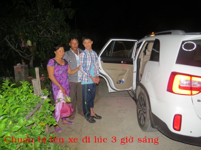 đầu tiên này . Chuyến đi khám bệnh cho hai em lần này tốn gần 7 triệu ($320) gồm tiền bao xe bốn bánh chở cha ẹm và hai em cộng với staff đi từ 2 giờ sáng tới 9 giờ tối mới về lại tới Xứ Cồn, tiền trả viện phí cho 2 em, tiền làm những tests như MRI, thử máu, etc, và tiền ăn . Chuyến đi này được bảo trợ bởi bạn Lâm Thuần Hương.